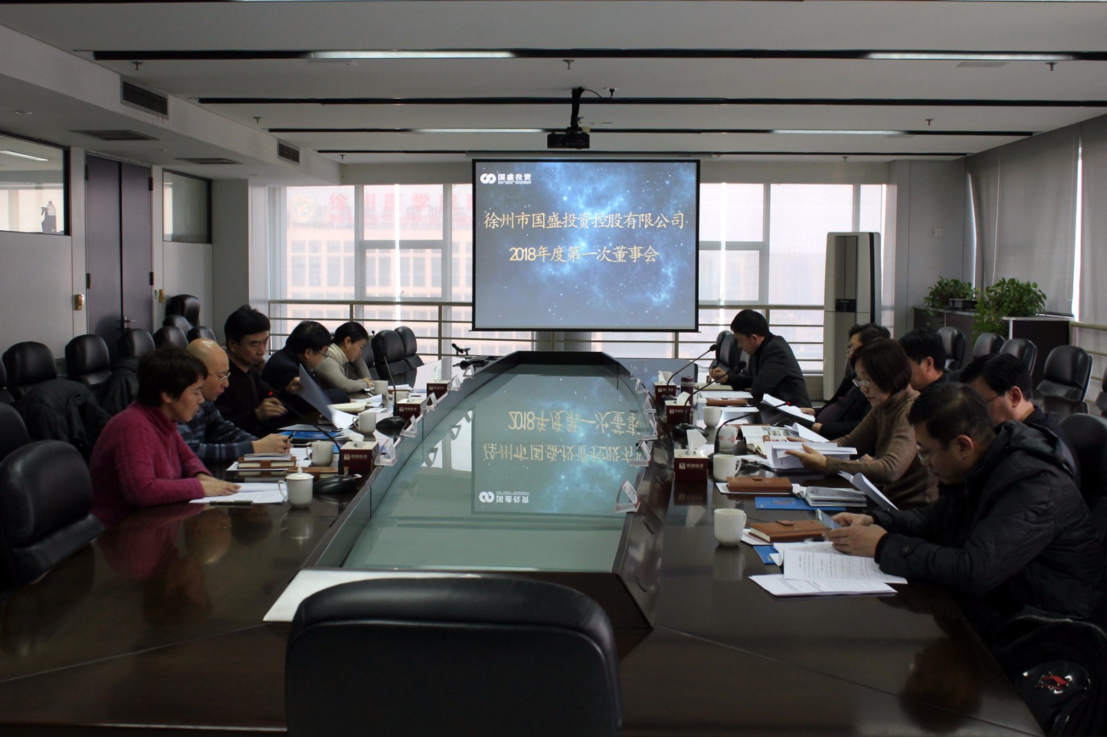 2018年1月5日下午,國盛公司召開(kāi)第四屆董事會(huì )第一次會(huì )議,董事長(cháng)趙麗主持會(huì )議,全體董事出席會(huì )議,市財政局副局長(cháng)陸新洋及公司監事列席會(huì )議。