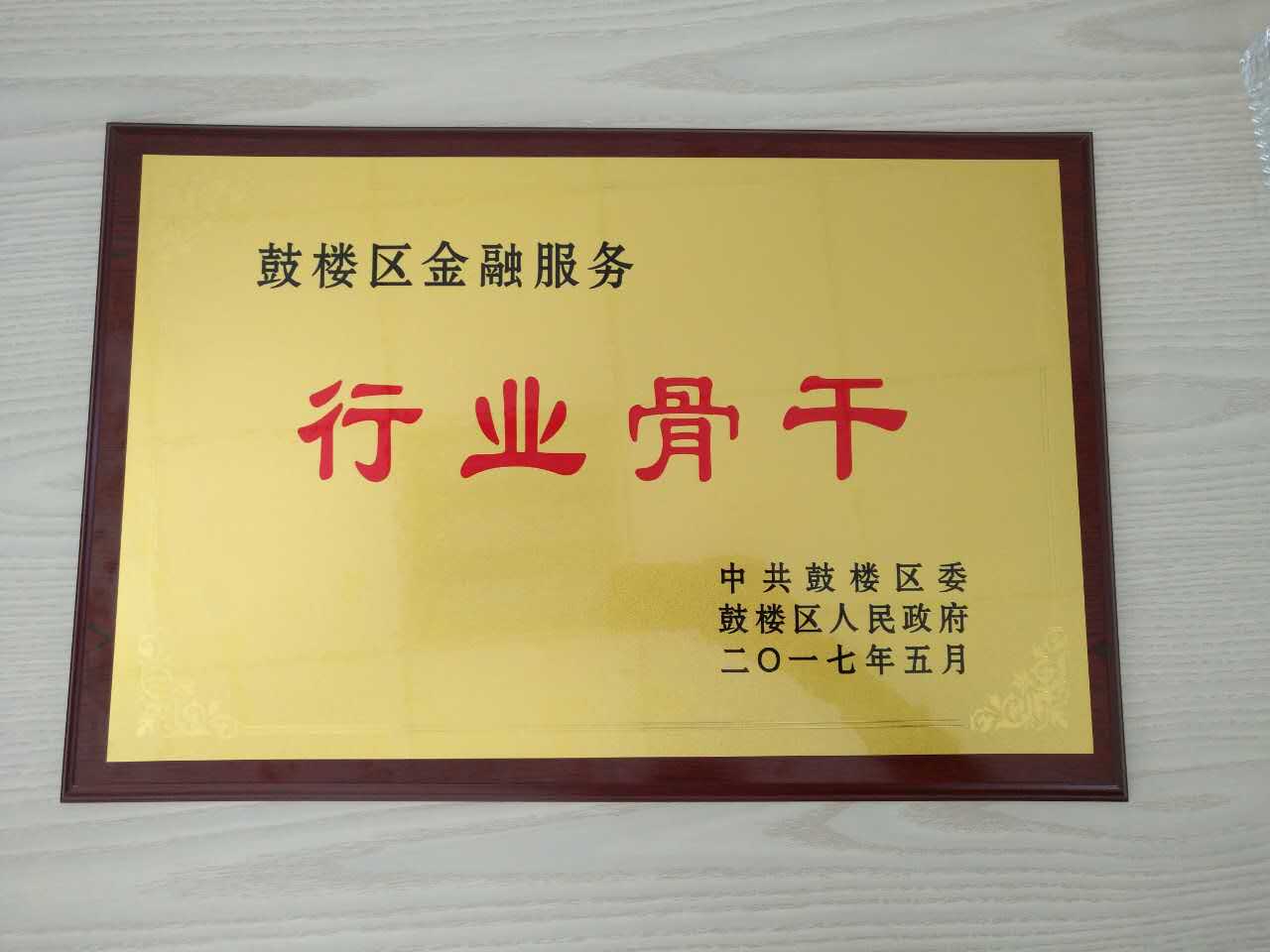 盛匯科技小貸公司榮獲鼓樓區金融服務(wù)行業(yè)骨干稱(chēng)號