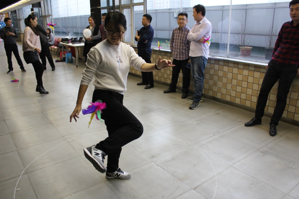 本次活動(dòng)突出了運動(dòng)性與趣味性,主要包括踢毽子、齊心協(xié)力運氣球、夾黃豆、蘿卜蹲、搶凳子等項目?;顒?dòng)中,選手們精神飽滿(mǎn)、勇于拼搏、奮力爭先,圍觀(guān)的員工更是熱情滿(mǎn)滿(mǎn),為選手們鼓勁加油,展現了國盛公司員工積極向上、健康快樂(lè )的精神風(fēng)貌。